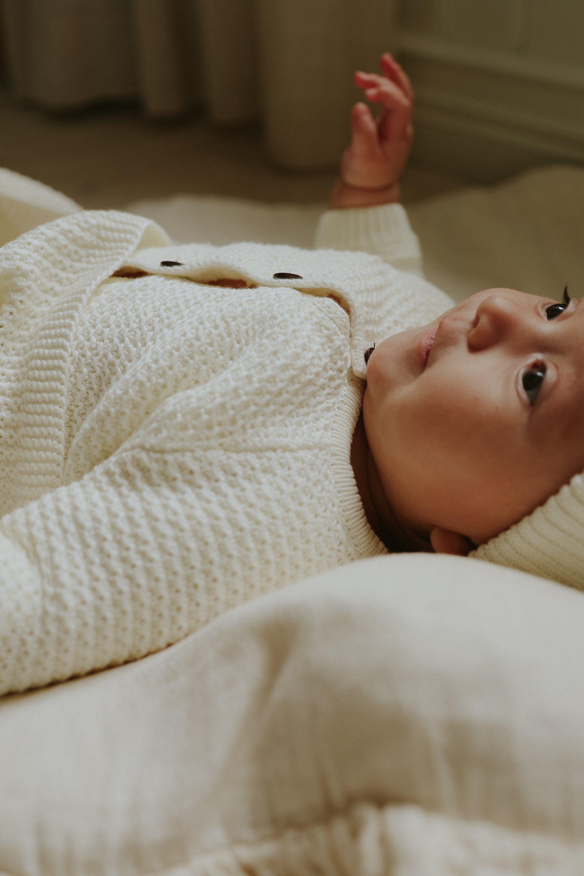 Knit Sherpa Lined Jacket + Pompom beanie